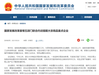 发改委等五部门联合约谈钢材、铜、铝等大宗商品重点企业!建材价格回落