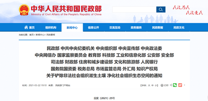 近日,民政部、中共中央纪委机关、中央组织部、中央宣传部、中央政法委、中央网信办、国 家监察委员会、教 育部、科技部、工业和信息化部、公安部、安 全部、司法部、财政部、住房和城乡建设部、文化和旅游部、人