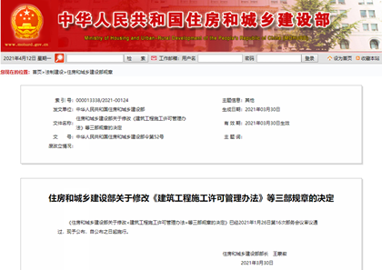 住建部修改《建筑工程施工许可管理办法》等三部规章