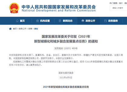 4月13日,国 家发改委发布关于印发《2021年新型城镇化和城乡融合发展重点任务》的通知,提出2021年新型城镇化和城乡融合发展重点任务。《任务》在提 升城市治理水平方面指出:落实适用、经济、绿色、美 -