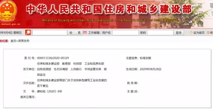 2020年9月4日住建部官网发布《住房和城乡建设部等部门关于加快新型建筑工业化发展的若干意见》,以新型建筑工业化带动建筑业全面转型升级,打造具有国 际竞争力的“中国建造”品牌。《意见》明确创新组织管理 -