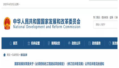 [国]家发展改革委4月20日发布《[国]家发展改革委关于<必须招标的工程建设项目规定>(修订征求意见稿)公开征求意见的通知》,就《必须招标的工程建设项目规定》(修订征求意见稿)公开征求意见 -