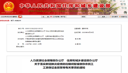 人力资源社会保障部办公厅 住房和城乡建设部办公厅关于落实新冠肺炎疫情防控期间暂缓缴存农民工工资保证金政策等有关事项的通知各省、自治区人力资源社会保障厅、住房和城乡建设厅,直辖市人力资源社会保障局、住房 -