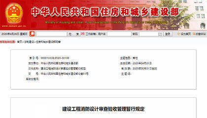 《建设工程消防设计审查验收管理暂行规定》已经2020年1月19日第15次部务会议审议通过,现予公布,自2020年6月1日起施行。住房和城乡建设部部长 王蒙徽2020年4月1日建设工程消防设计审查验收管 -