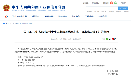 9月4日,工信部发布《及时支付中小企业款项管理办法(征求意见稿)》,对机关、事业单位和大型企业支付中小企业款项的相关问题进行明确。1、机关、事业单位和大型企业从中小企业采购货物、工程、服务的,应当在3 -