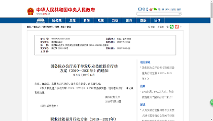 国务院办公厅印发《职业技能提升行动方案(2019-2021年)》