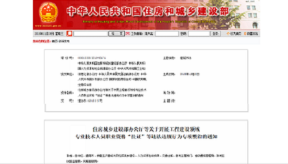 近日,住建部等七部委发布了《住房城乡建设部办公厅等关于开展工程建设领域专业技术人员职业资格“挂证”等违法违规行为专项整治的通知》。通知表示,为遏制工程建设领域专业技术人员职业资格“挂证”现象,维护