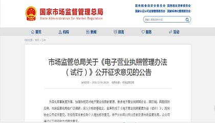 市场监管总局关于《电子营业执照管理办法(试行)》公开征求意见的公告 为深化商事制度改革,加强和规范对电子营业执照的管理,推进电子营业执照跨行业、跨区域、跨层级的应用,市场监管总局在广泛调研、深 -