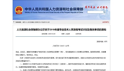 人力资源社会保障部办公厅关于2019年度专业技术人员资格考试计划及有关事项的通知