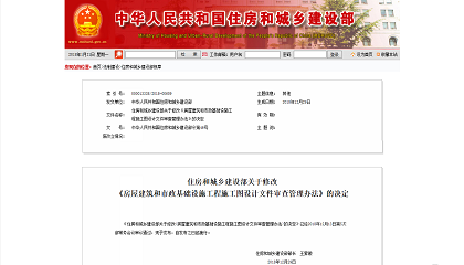 近日,住建部发布了修改《房屋建筑和市政基础设施工程施工图设计文件审查管理办法》的决定,其中修改共涉及3项条款,主要是增加消防与人防工程审查。住建部原文:住房和城乡建设部关于修改《房屋建筑和市政基础设施 -