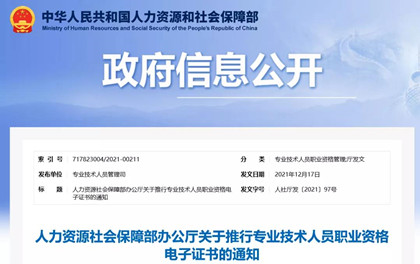 继9月26日,住建部发布通知,决定自10月15日起,在全 国范围内实行一 级建造师电子注册证书。12月17日,人社部官网发布《人力资源社会保 障部办公厅关于推行专业技术人员职业资格电子证书的通知》。明 -