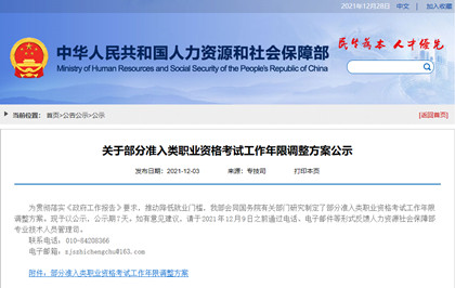 在今年年初的十三届全 国人大四次会议上,政 府工作报告明确提出,“动态优化国 家职业资格目录,降低或取消部分准入类职业资格考试工作年限要求。”近日,人力资源和社会保 障部发布《关于部分准入类职业资格考 -