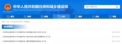 住建部公布3条国 家标准!自2022年2月1日起实施