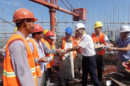 战高温送清凉度酷暑▲防暑降温物品连续高温,让八月的南昌依旧处于酷暑模式。骄阳似火,酷热难当,中建华夏集团项目总部大楼施工现场仍旧是一片繁忙、热火朝天的景象,几十名建筑工人,顶着烈日炎炎,冒着高温酷暑,
