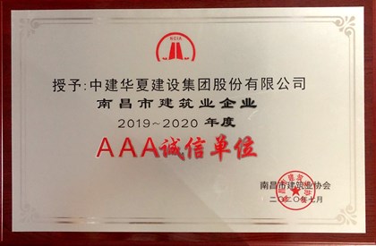 近日,2019年—2020年度南昌建筑业企业诚信评价活动结果揭晓,中建华夏建设集团股份有限公司荣获“南昌市建筑业企业AAA诚信单位”称号。“诚信企业”的评审是政府、市场对企业经济效益、财务状况、安全生 -