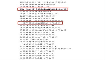 近日,江西省工商联、江西省总商会发布了《关于对为江西抗击疫情爱心捐赠作出贡献的民营企业通报表扬的决定》(赣联字〔2020〕19号),鉴于在助力我省抗击新冠肺炎疫情阻击战中的突出表现,中建华夏集团被授予 -