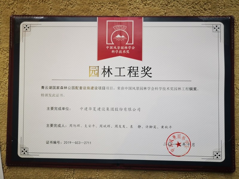 中建华夏建设集团荣获2019中国风景园林学会科学技术奖园林工程铜奖